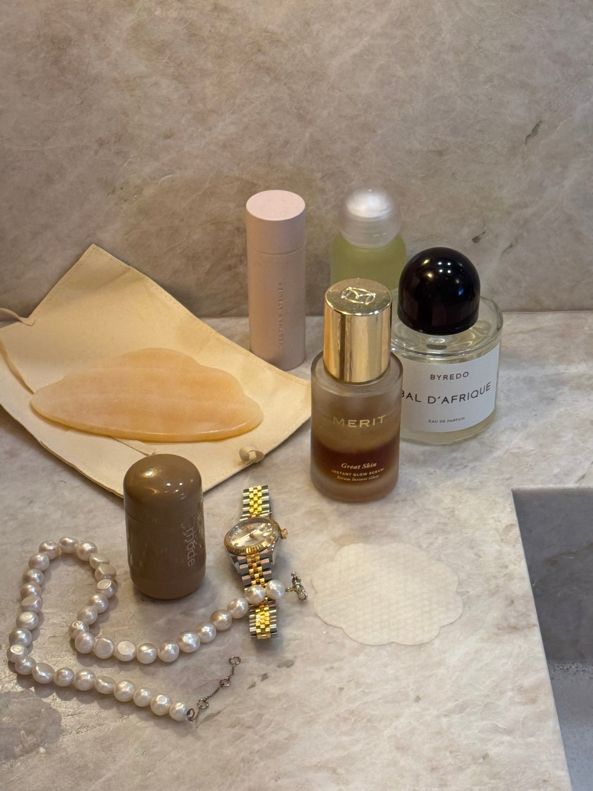 Both are highly effective and I personally switch back and forth between the two. What is helpful about using tools such as Gua Sha stones, spoons, or brushes is that it takes the power out of your hands, making the technique of gentle pulsing and gliding more possible. It also sets your mind into a mode of completing the routine and actually spending time on it. I like to apply my skincare products with increasing lymph flow in mind, like a little microdose boost. Creating flow in the body is accumulative and every drop counts.