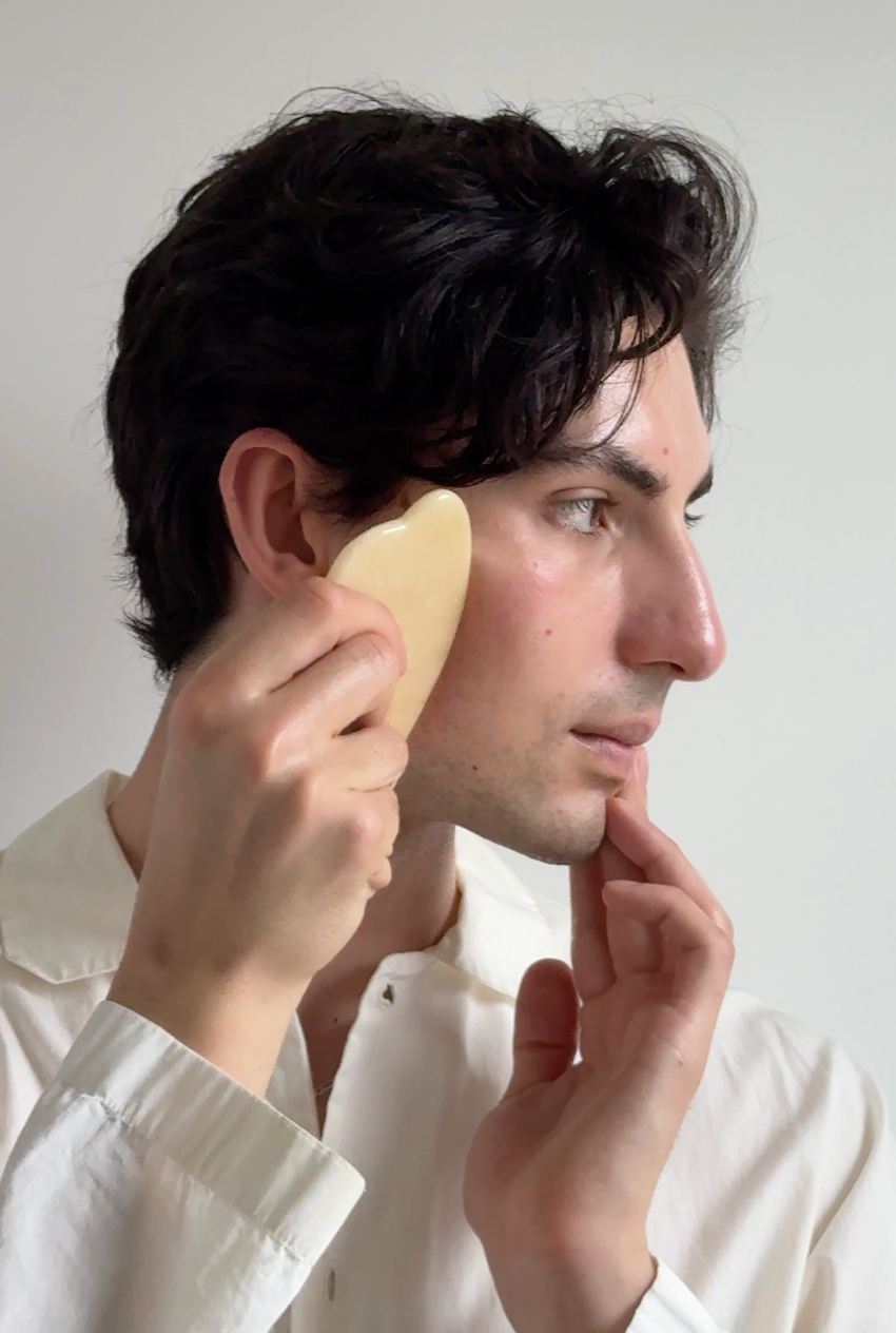 There’s both immediate and cumulative results that come with regular Gua Sha use. After massaging your face and neck for roughly 2-7 minutes you should see a decrease in puffiness primarily around the eyes and jawline which is where lymph fluid tends to stagnant. You can also expect increased product absorption and clearer sinuses. Overtime, you will improve your skin’s ability to detox, increase tonality, and release tension resulting in an overall more refreshed look to your skin and face structure.