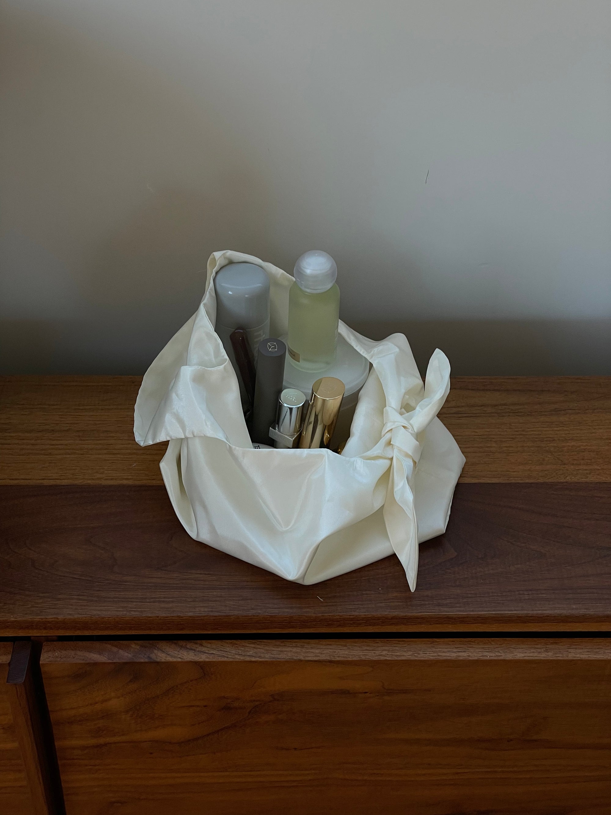 Meet Toki: Inspired by the Korean word for "rabbit," this taffeta bojagi bag brings a touch of traditional Korean artistry to modern life. Made with durable taffeta fabric, Tokki is designed to be versatile—whether it’s used as a thoughtful gift wrap, make-up bag, or a purse. With its rabbit-like shape and soft folds, Toki adds a playful yet meaningful detail to any setting, celebrating the timeless art of bojagi with a fresh twist.
